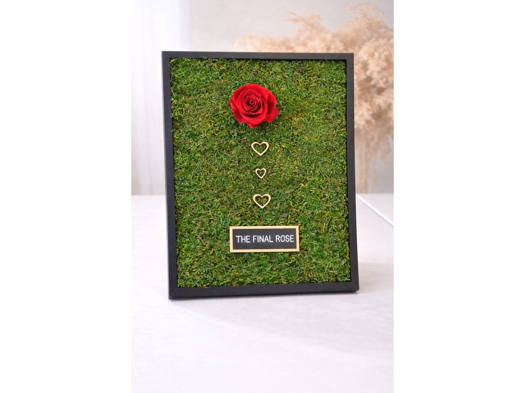 Stabilizovaná růže zasazená do přírodního mechu vznikla jako připomínka okamžiku, kdy se rozhodujeme srdcem. Bez spěchu, bez hluku. Jen s jistotou.