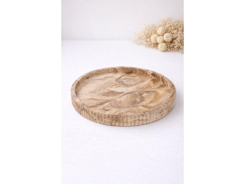 Ručně vyráběný podnos s jemným vroubkovaným detailem po obvodu je elegantním základem pro svíčky, difuzéry, šperky nebo koupelnové doplňky.